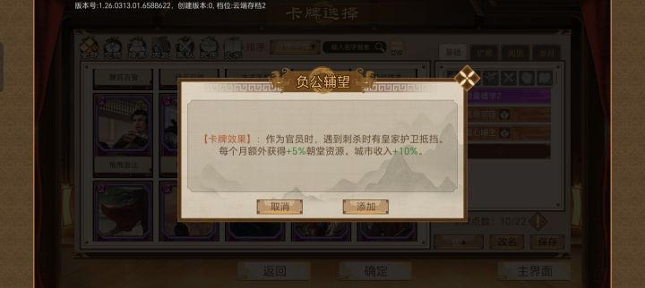 我又又又又回坑了,上次回坑,居然是三年前了,哇,时间过得太快了吧。我这两天都在跑商,太爽了!刚刚把西域图奉上,当了县令,和大家分享跑商经验。给大家隆重介绍一下请教卡!原本我只能带商队距离1经商,但是在角色17岁那年,我寻思给他成家,但是又不知道选什么妻子。我就想着看看她们的卡牌吧,结果一点开,第一个就是缘分啊,跋山涉水!作用是,角色所有身份出行距离+1!这真的是跑商最强技能!住宅的驿站