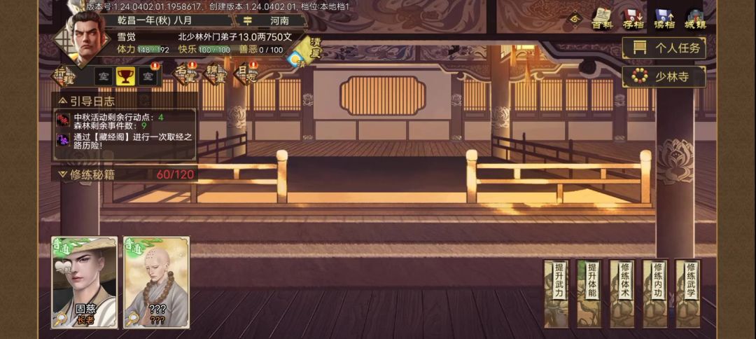 第一个门派我觉得还是少林比较好,不但体力充足,而且叛变的时候能积攒一大堆取经食物,足够挥霍很长时间了。关键是还很硬