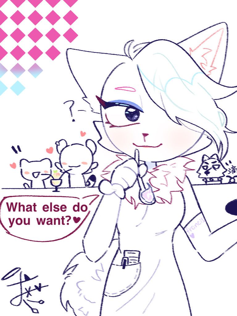 我并不知道他是♂是♀,也不知道他的性格,我好像记得他经常给罗克西帮忙(小跟班?不是)(我可能会记错!我的记忆力非常差,请谅解)但是好像现在已经不在了,他叫什么名字来着我也忘了|°з°|🎵,算是私设吧,,真的很好奇这个人物,我画的这个和游戏没关系哦,以官方消息为准,到时候这个人物出了,请不要骂我画的ooc(ooc指人物形象崩塌或者与人物实际形象不符)了qwq,唉我到底为什么这么怕别人骂我呢。。 还有