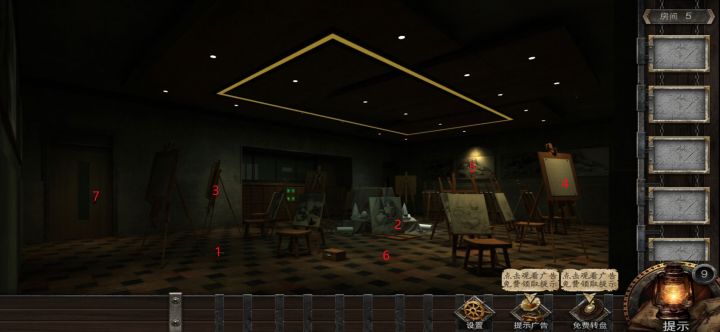 闯关顺序如下:1、拿到地上的橡皮擦2、使用橡皮擦,左右擦画的右下角,右下角部分画消失,出现对应线索(GELM)3、根据线索调整柜子的按钮,打开柜门拿到铅笔4、使用铅笔涂抹画上的方格5、观察壁画上的数字(2531)6、打开盖子,结合方格和壁画上的数字获得密码为1125,调整密码打开画箱,拿到钥匙7、使用钥匙开门离开