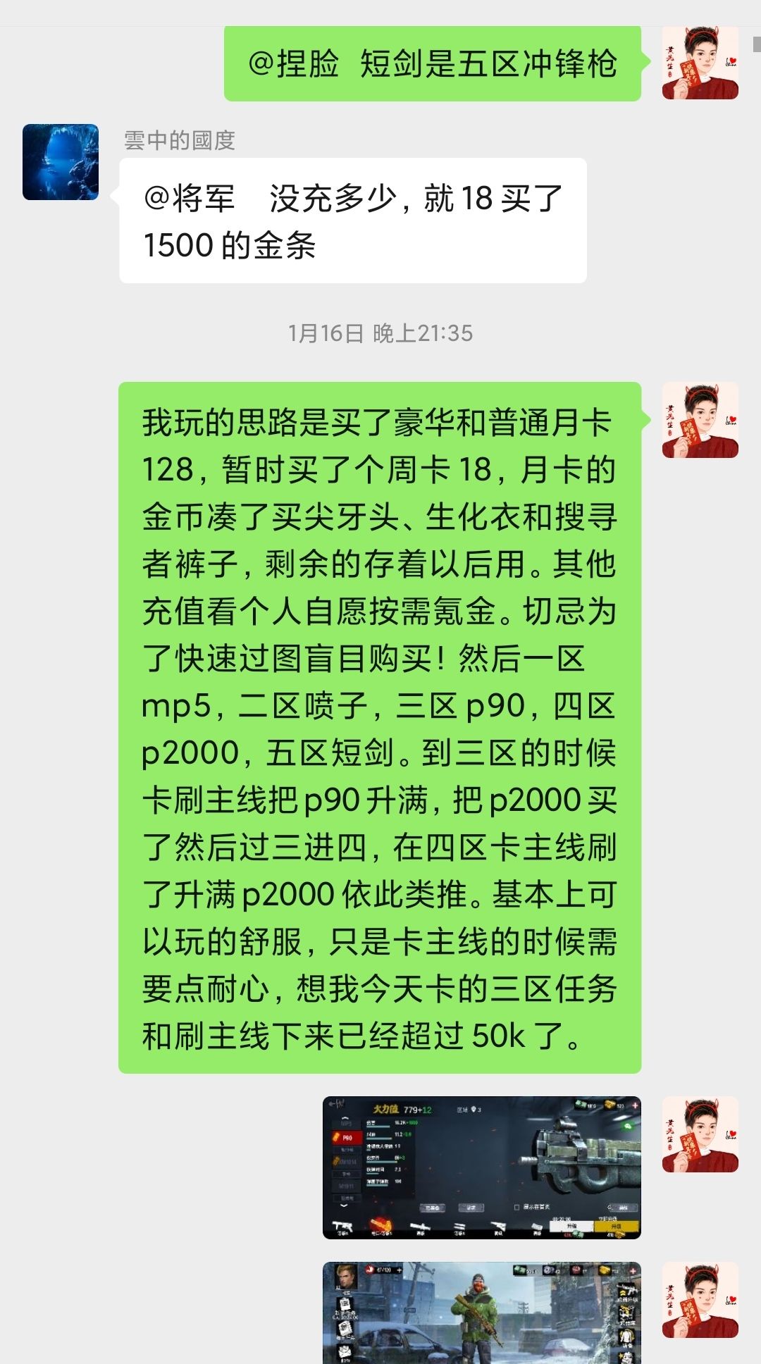 打字好慢,直接使用在群内截图,多包涵🌝🌝 目前有其他朋友在五区使用手枪通关的,短剑vector和手枪p99可以根据个人喜好选择!消耗相比较步枪而言要节省许多!ʕ ᵔᴥᵔ ʔʕ ᵔᴥᵔ ʔ 如果我们不能氪金,或者属于微氪一族, 游戏里记住一个原则: 忍一时得寸进尺,退一步变本加厉!