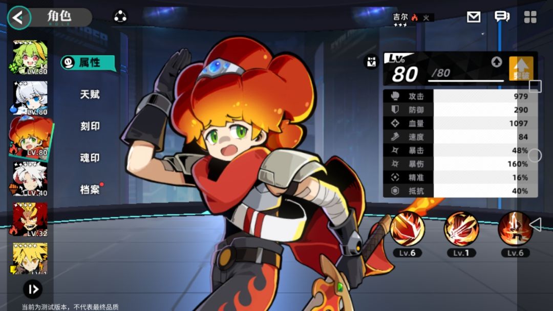 战神联盟池子出的盖亚,哈莫池子歪的雷伊,普通池子又出盖亚,非酋保底人了。我第一天能推到主线第一章全部内容的阵容是布布花、克拉肯、吉尔,分别都拉到80级。吉尔刻印带送的强者之证三件套,攻击暴击属性,布布花和克拉肯带虚空套,布布花精准生命属性,克拉肯生命属性。布布花天赋激活到升级第三技能,剩下的天赋也可以给吉尔升,克拉肯可不升,打不过主线就手动操作或者继续养成。这次三测晚参加了,现在应该算测试的第七八