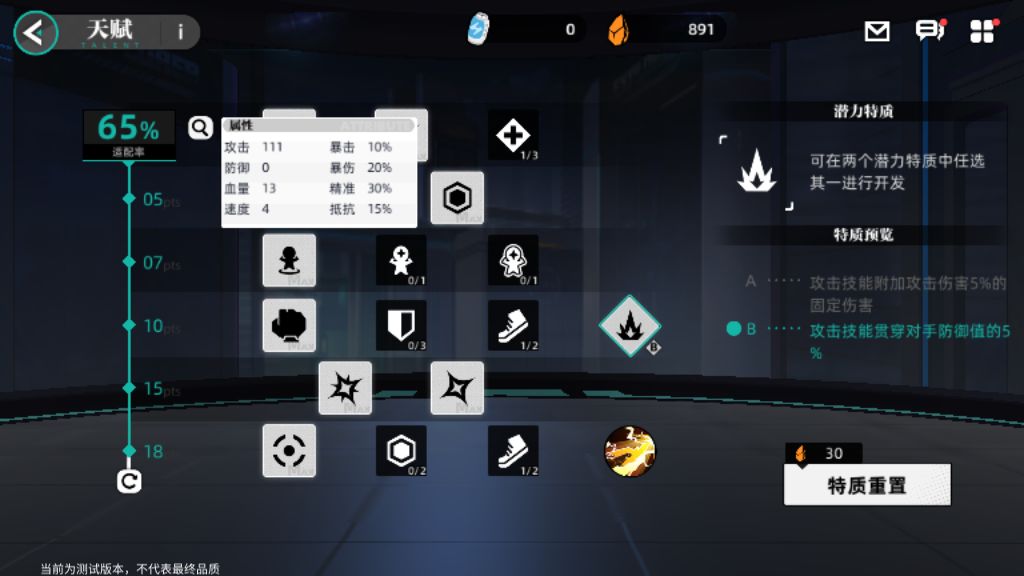 天赋的能力药剂在异度空间产出,用于提升角色能力,解锁特质和技能3选1,增强1个技能,所以天赋基本自己看着点,一般先开发到增强技能。 刻印套装分为15套,每个角色只能带5个刻印,2个或者3个一样的刻印就可以激活套装效果,所以每个角色的刻印套装基本都是2+3,每个刻印都有主词条和副词条,词条属性有11种,升级就可以提升主词条属性和解锁副词条属性,每5级升级和解锁,白色和蓝色的刻印满级10级,紫色刻印满