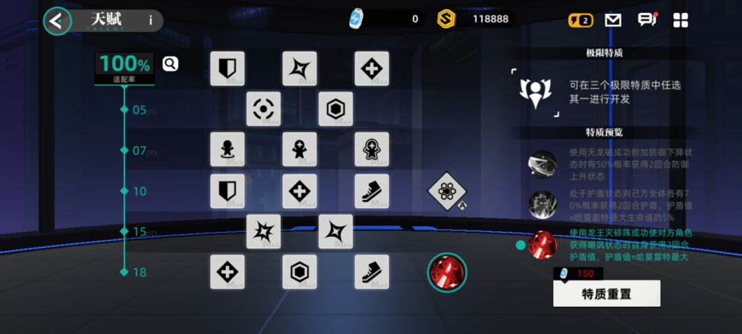 哈莫雷特(坦克精灵,主堆血量,大招可以附带自身最大生命加成,一定抵抗防控) 种族:攻击441,暴击10%,防御412,爆伤150%,生命866,精准0%,速度106,抵抗6% 天赋百分百:防御83,生命260,速度10,暴击10%,爆伤10%,精准15%,抵抗30% 天赋特质:防御提升加成和受击回血,实际效果差不多可自行考虑。 技能极限特质:选择2技能或者3技能都可以,2技能以联防为主保护全队,3