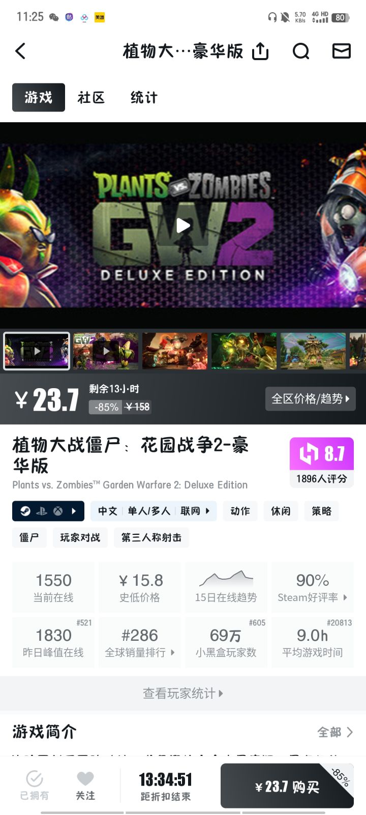 pve部分也不错,多人守点对抗ai怪物或者boss,除此之外故事模式可以体验植物与僵尸的双视角,体验超过20h+的剧情。