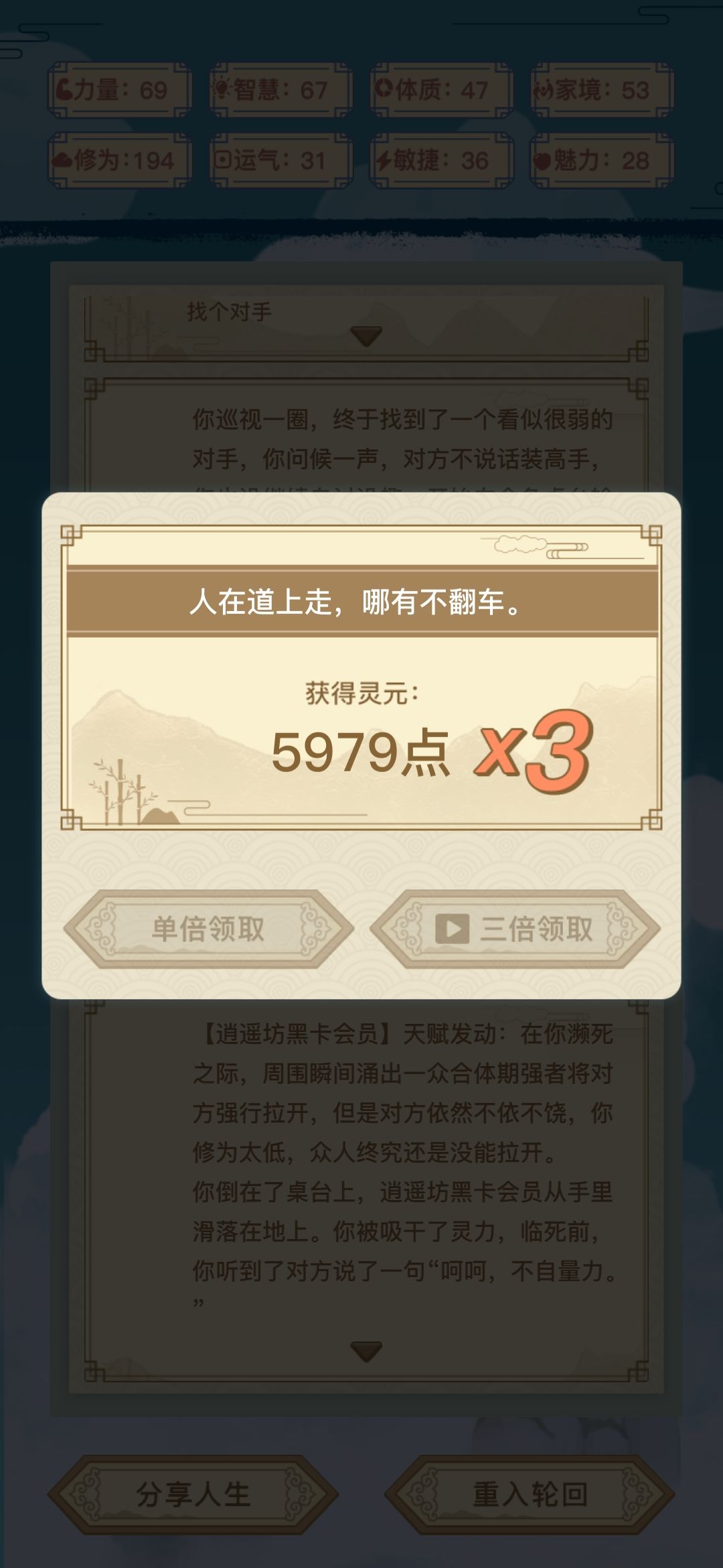 赌狗流玩法,😂😂😂,可以开局只要逍遥卡,然后开赌,运气好修为高一直不死