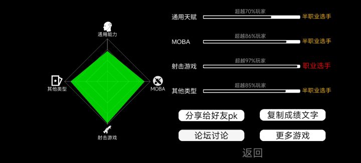 为情..所困la : 随便打几下基本上就全职业了一年没动射击手游了就一个是半职业评分个人认为感觉就是瞎评的视觉机这点估计是真的哈特别差我这点特别差超越22%王者类的游戏没接触过评分也是20%多个人认为评分确实是瞎评的没几个是正确的平均反应速度228ms属于是普通人水平还能超越89.11%手固定目标72压枪695。毫米多目标89,移动追枪43%。四个下来就压枪,不是100%,是99.6%,剩下全是100%,这个就是瞎评的。速都慢到平均354了超越90%这么算下来,人均职业何况我一年多没接触射击手游了