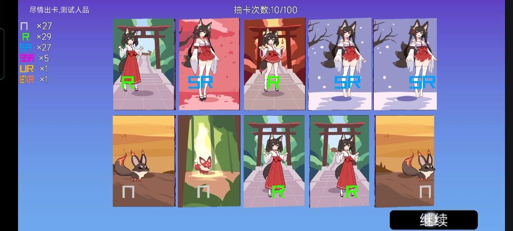 看来这个游戏可以很简单的刷成绩(我怀疑运气在和我闹,第一次两个UR,第二次比较惨,一个UR,第三次直接起飞两个EXR,一个UR)
