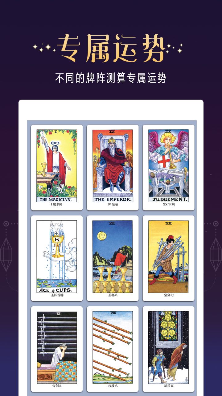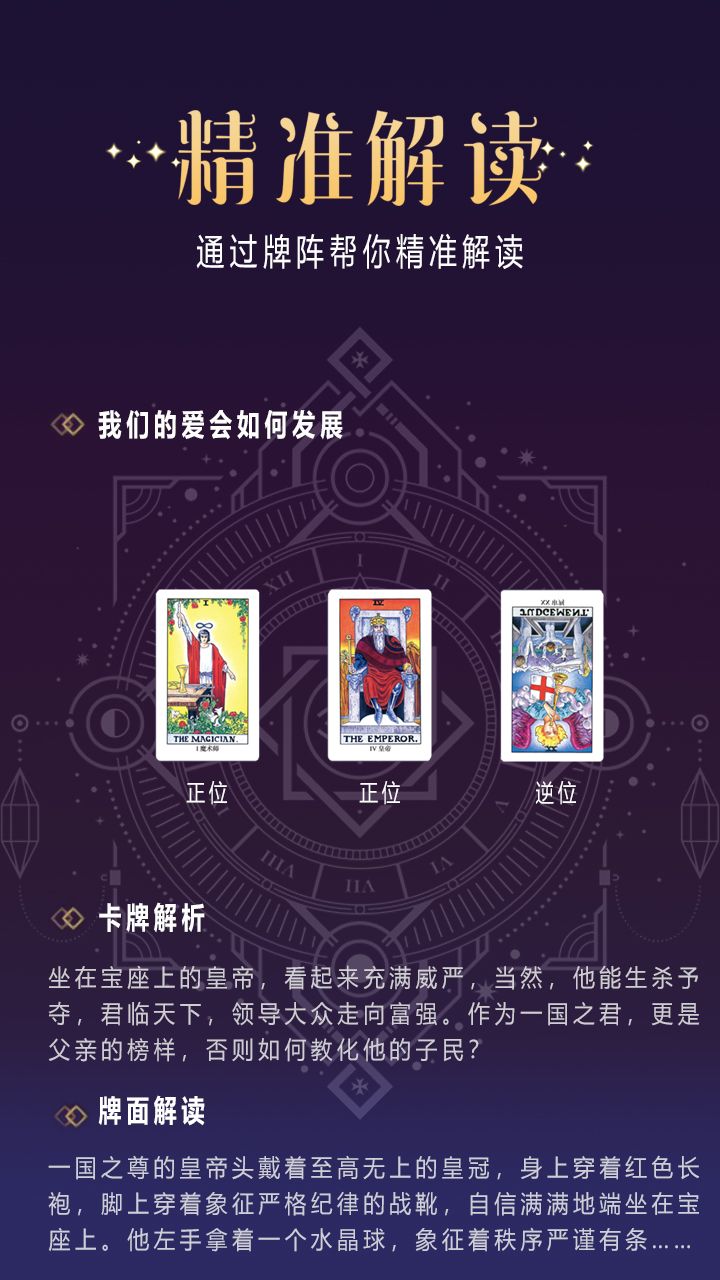 结合塔罗牌经典玩法,精准解读每一张卡牌,预测专属于你的运势