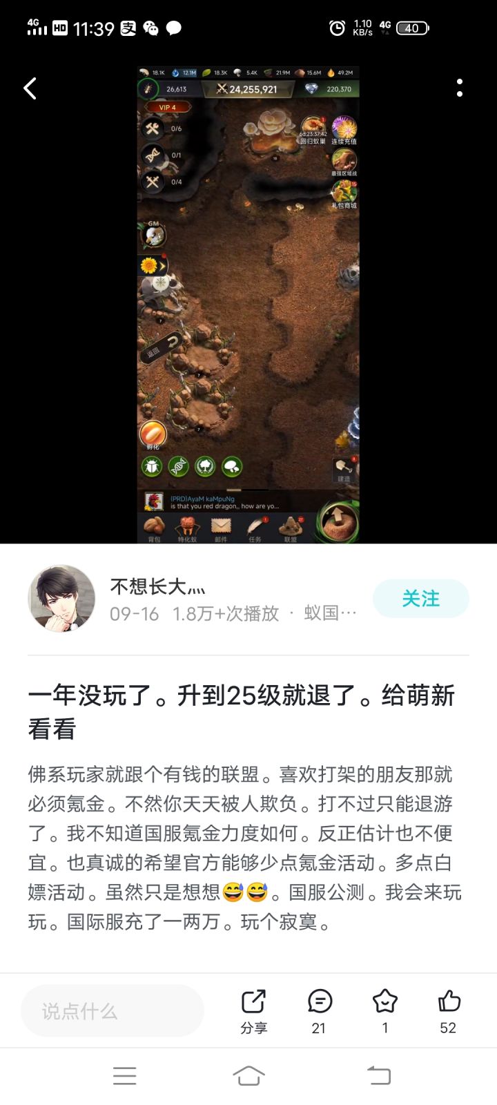 论坛看了几十个视频,游戏都没有公测,一堆推送夸游戏的视频。老帖子里面就下面这个图的玩家说的还算真实。。海外版玩的是寂寞。。