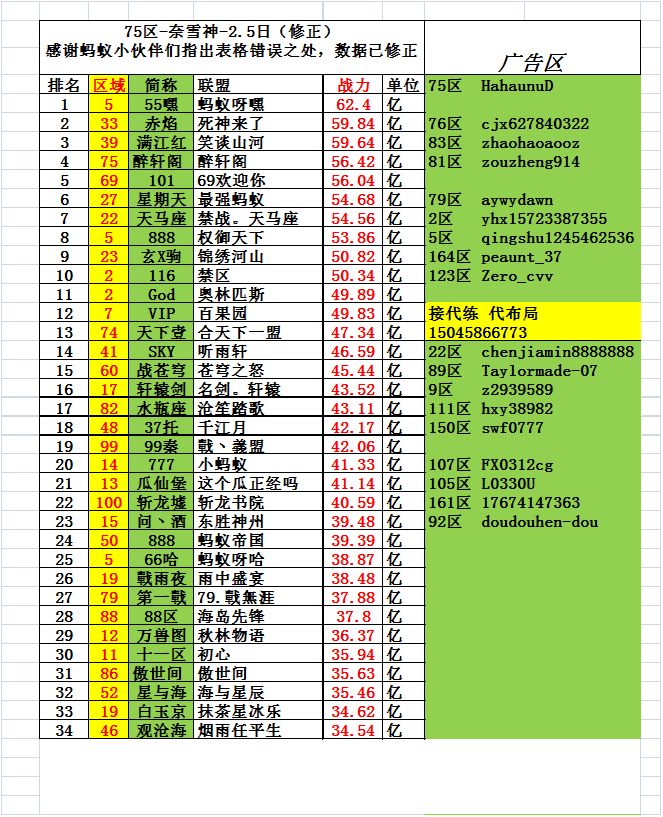 2-100区联盟战力值排行榜-跨区召集后第一版