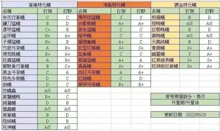 ⑧大佬推荐的前期强势橙蚁,竹节,巨齿,杰克,以及氪金给的黄蛛橙蛛