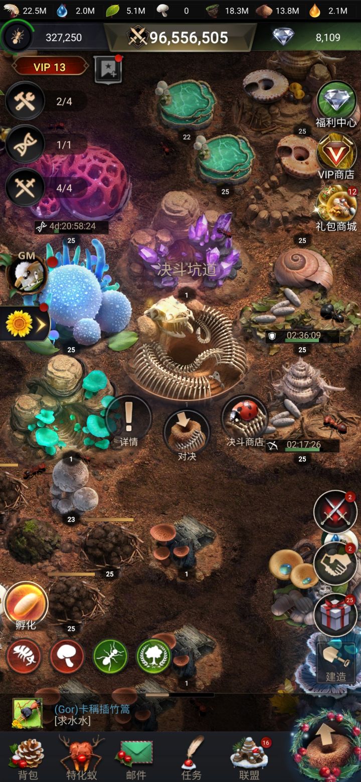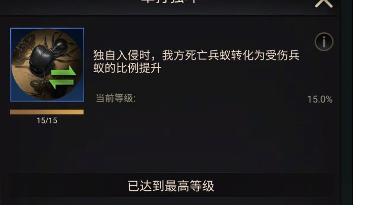 一、核心攻略要点新手期快速发育优先升级蚁后寝宫:解锁更多建筑和功能,带动全局发展。资源建筑同步升级:菌圃、蚜虫牧场、水洼等资源设施与蚁后等级保持一致,确保肉、蜜露、湿土稳定产出。特化蚁培养:橙色特化蚁(如熊猫蚁、黑金弓背蚁)优先升级第 1、6 技能(增加带兵量),其次提升攻击或防御技能。资源管理与建筑布局集中资源生产区:将菌圃、蚜虫牧场等集中放置,缩短运输路径,提升效率。仓库作为防御