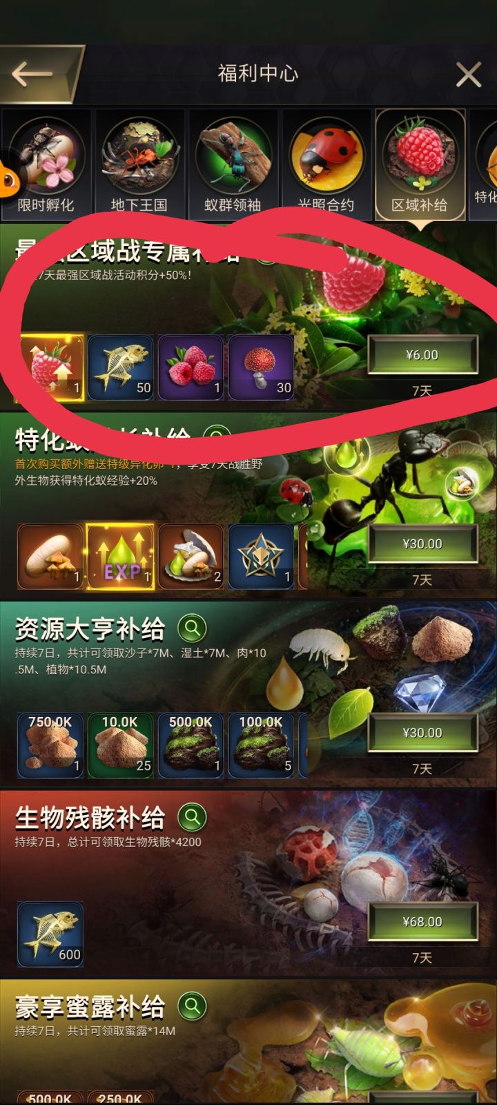 19本t7,22本t8,25本都是战力转折点,开了高等级兵蚁。t7就是7级兵的意思微氪就冲野怪计划➕区域战6块钱七天的50%积分加成就好➕生物残骸补给七天,每天600骨头总共4200骨头(为了点进化早点t9)。其他的一概不要,我推荐平升,赌不赌的了解下个人考虑。一个野怪计划全程下来一个6橙必得,基本也就够了,中间掠夺,升进化区域发展,进化野怪爆产,慢慢的再合橙怪就好,比别人野怪快两到三倍的速度