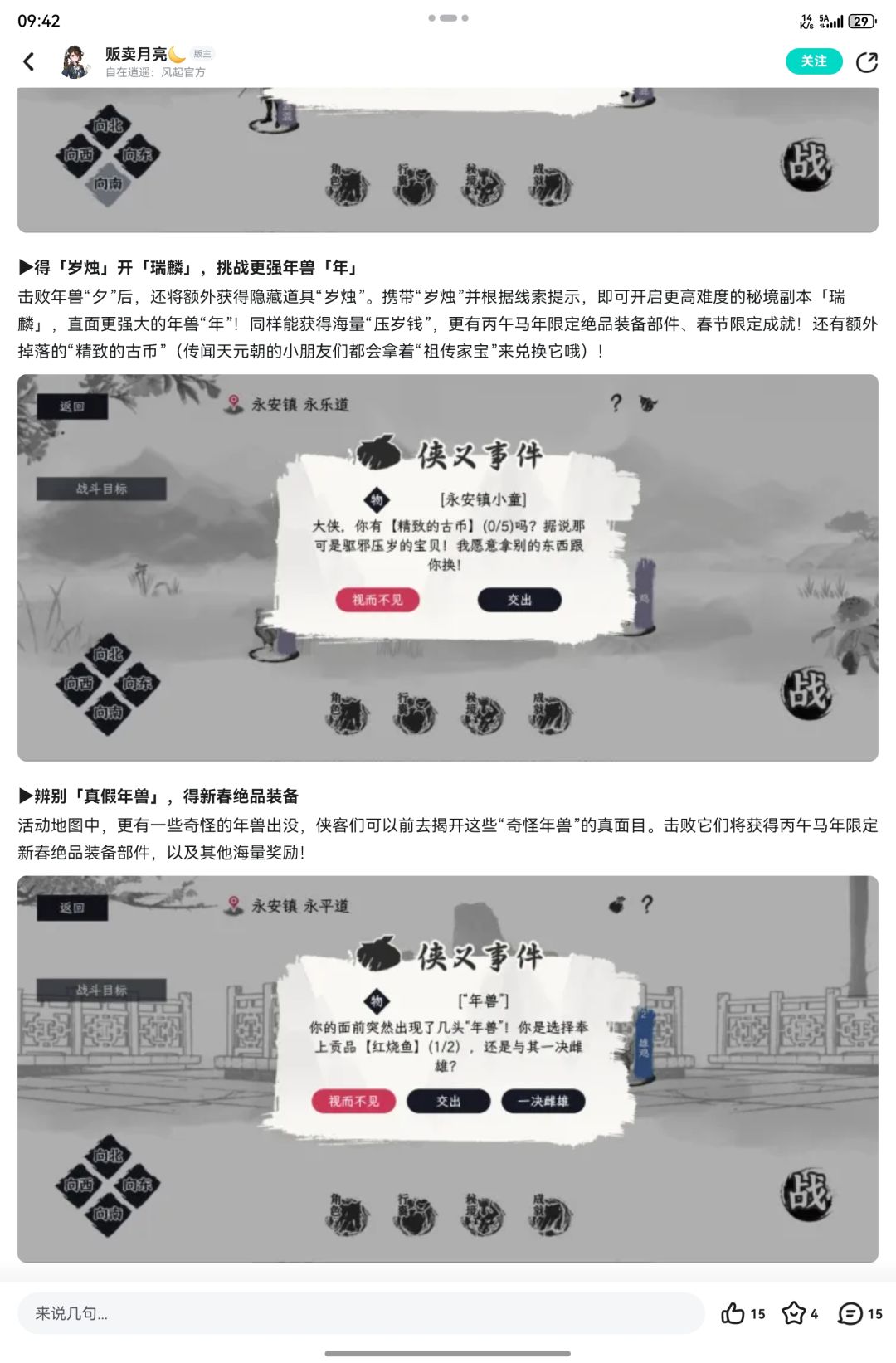 大家好,我是自在逍遥:风起的策划,天涯,那么,我又来了。 中秋假期收到了大家的各种五星预约,五星期待和观望,说实话,我是没想到的,我原本以为过个中秋假,有个1000左右预约量就很NICE了。(笑) 挨个看了大家的留言和评价,心里是又激动又兴奋又感受到了巨大的压力和动力,那么今天就在这里跟各位老板聊五个事情。 一、关于自在逍遥:风起跟各种优秀作品的那些事儿。 看到有老板给出了很高的期待和评价,甚至