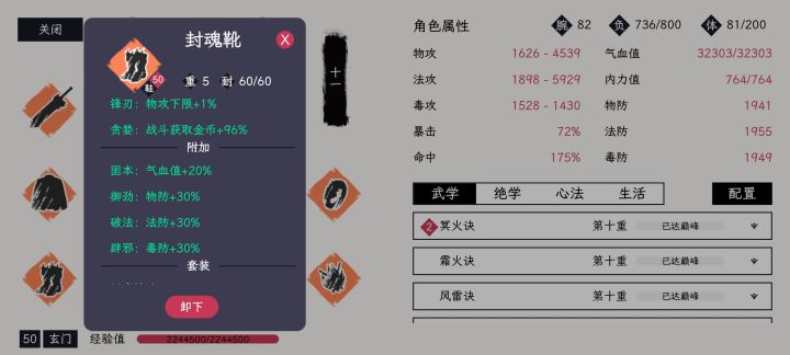 开宗之后就开始跑图刷其余宗门好感,给的装备非常nice,就是跑图刷材料费时间武器防具首饰啥都有机会给,我这几个封魔的装备都是最后一张图上两个地方给的,要不是给了一个女装衣服四件套就齐了