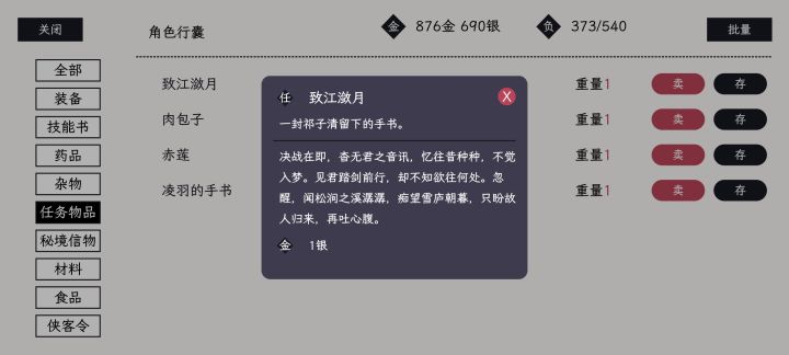 前言:1,游戏内仅有两个唯一物品一个主线物品“手书”,一个支线物品老板娘的肉包子,对实力没任何作用。因此玩自在逍遥:风起不需要有任何顾虑。2,游玩过程中遇见侠义事件都可以点开看看,能打过都要去打,需要回答问题的自求多福吧。3,我虽然写了这个攻略,但是依旧推荐自己慢慢研究这个游戏。4,主线剧情会影响到狭义事件的发生。由于狭义事件过多,我目前很难全部验证,请尽量做主线剧情来升级。风起并不会因战