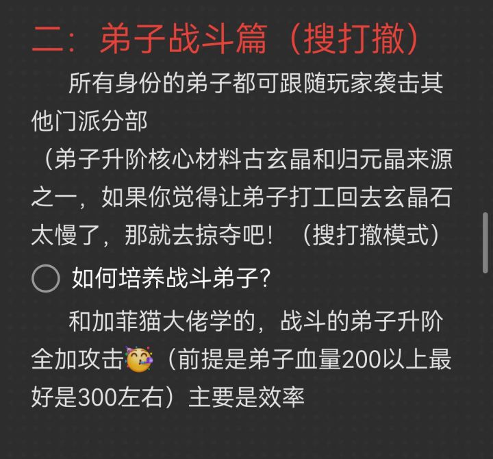 - 接上回前言:新手创立宗门招生详章了解之后接下来绕不开的话题就是培养弟子建议在一级宗门里面先培养每一个身份的弟子都培养到4阶之后再去升级二级宗门。那么,弟子应该怎么判断价值?弟子面板:打开弟子界面1.品级: 与弟子获取时侠义声望限制相关, 蓝300,紫500,橙10002.阶位: 弟子目前阶位等级,与弟子的攻击和血量和能胜任的宗门事务相关3.身份: 与功能性相关,如战斗