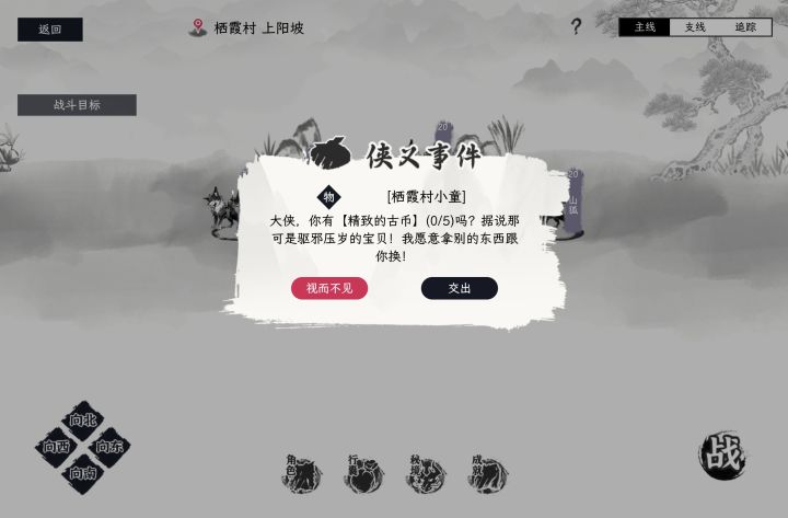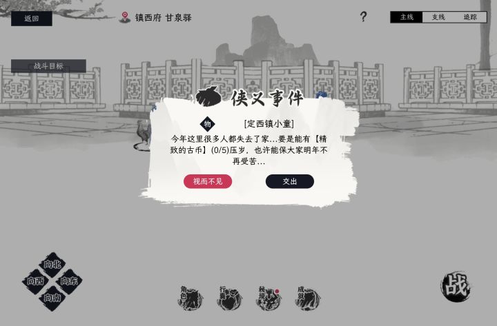 前言:1,游戏内仅有两个唯一物品一个主线物品“手书”,一个支线物品老板娘的肉包子,对实力没任何作用。因此玩自在逍遥:风起不需要有任何顾虑。2,游玩过程中遇见侠义事件都可以点开看看,能打过都要去打,需要回答问题的自求多福吧。3,我虽然写了这个攻略,但是依旧推荐自己慢慢研究这个游戏。4,主线剧情会影响到狭义事件的发生。由于狭义事件过多,我目前很难全部验证,请尽量做主线剧情来升级。风起并不会因战