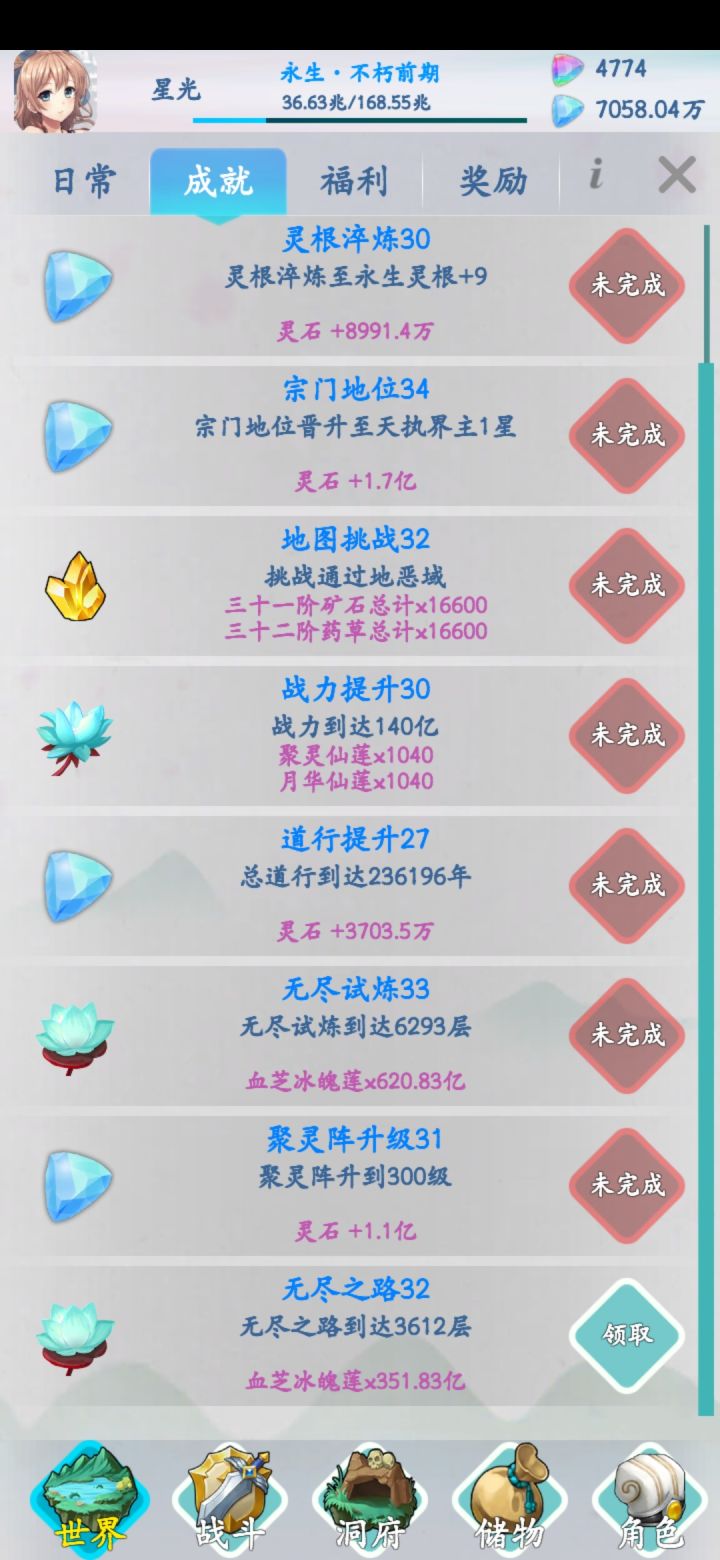 所以你是第几境,成就后面未完成,显示的是你的境界加3,就是越2