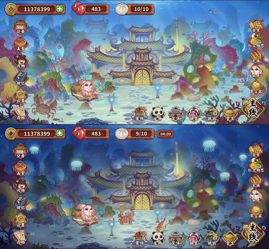 更新公告 1.主线二十八章 全部升级耗费15W铜币 难度等级★★★★☆ 好玩,需熟练 满级内饰需耗费50+100梅花,60+120红玉(背景一样,道具充裕可冲) 局内buff升级满需耗费36W铜币(铜币充裕可冲) 聚宝盆+游戏双倍新增剩余次数,非常细节!!! 2.新一期鬼市(铜钱多随便搞、需肝) 新一期鬼市开启!开放时间晚上7:00-早上6:00 活动需要792红玉、188888铜