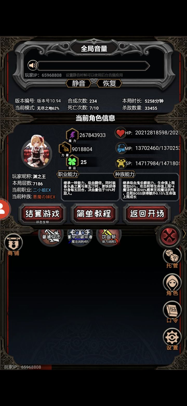 四是玩的时间玩的好确实时间拉的太长了,我第二把玩的法师打了一个星期多了,还没死,也不知道怎么死。。。三千万魔攻,五百多万血,打了将近六千层,身上还有一堆保命装备复活装备以及一堆药水