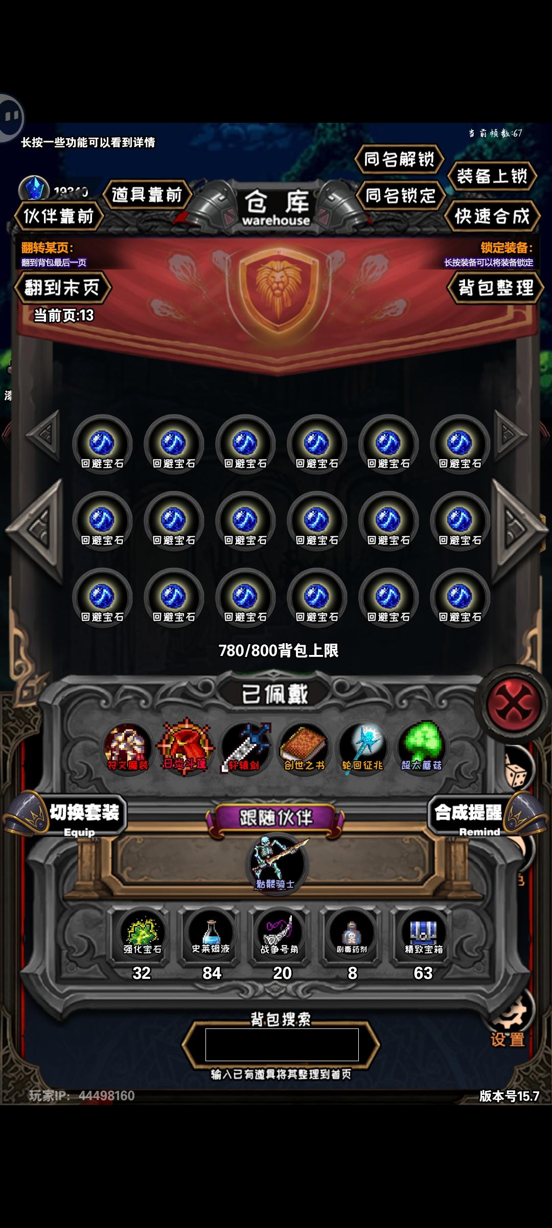 装备特性篇:装备或伙伴同名均不可生效,典型的如:符文之石强化的符文。背包生效的小宠物【隐藏特性有:仅写出类似于“效果”(背包生效)】这种类型的宠物装备上去之后就不会生效,如小兔子这种背包生效增伤的,还有躁动的史莱姆,背包生效减少隐藏幸运装备上去后均不生效 同名装备也并非绝对不可生效,典型的类似如:>1000层合成的命运之轮,背包生效一个,装备后还可生效(推测原因可能是,写的不只有“背包生效”四个字