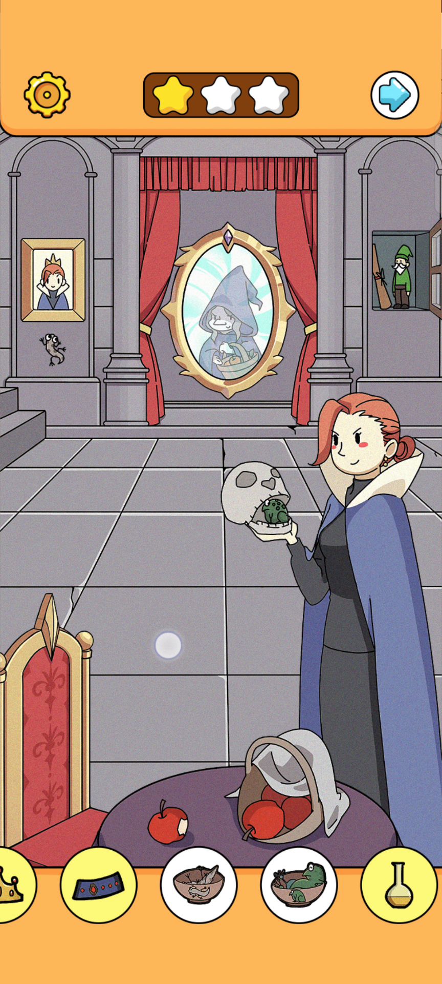 蛤蟆和蜥蜴都要移到镜子上,会自动放到老巫婆那边的碗里, 这我过关了!