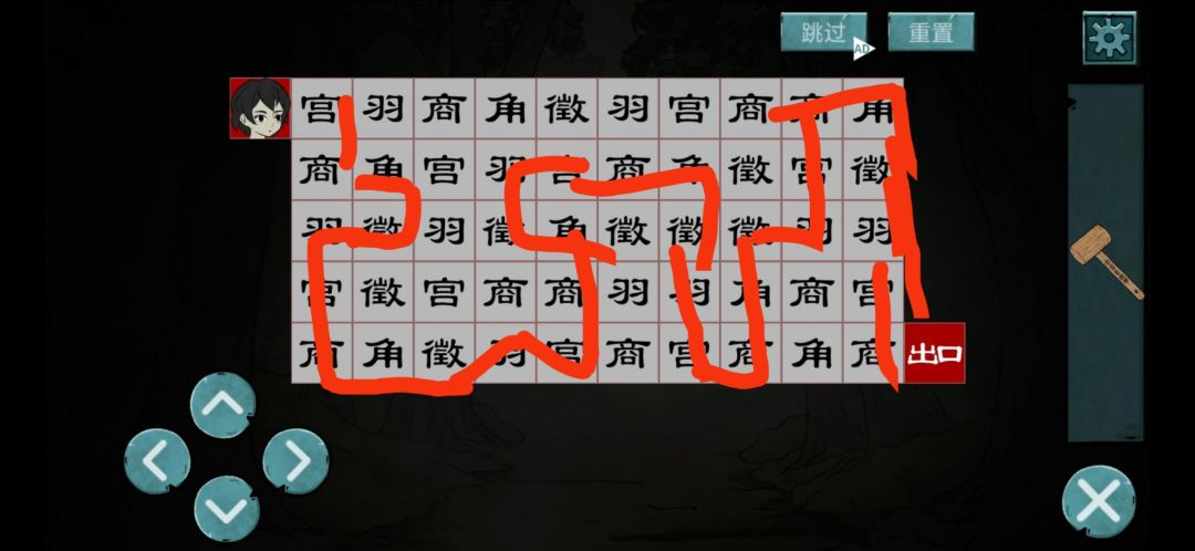 森林迷宫宫商角徵羽的走法。其实此类谜题从出口倒推很容易解开。ps:手动画线凑合看
