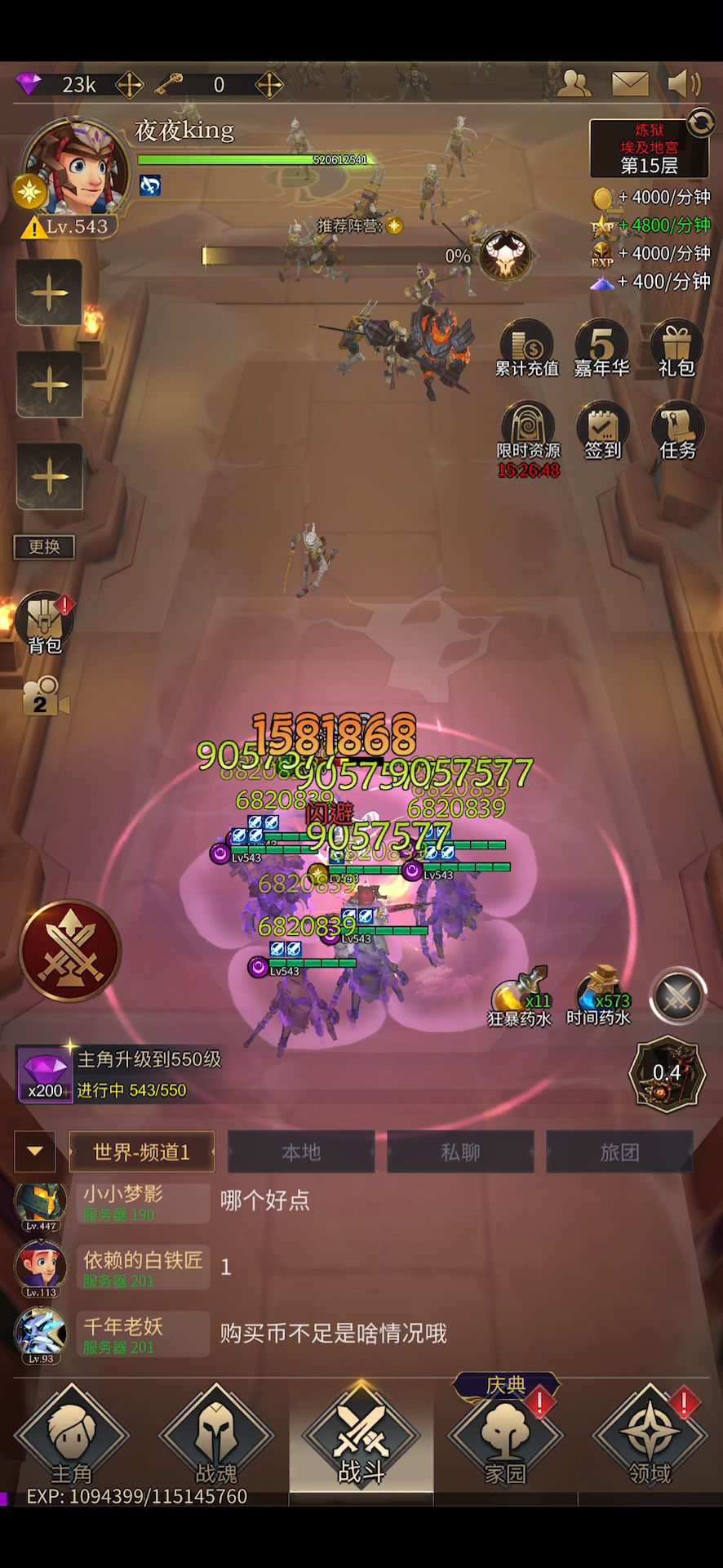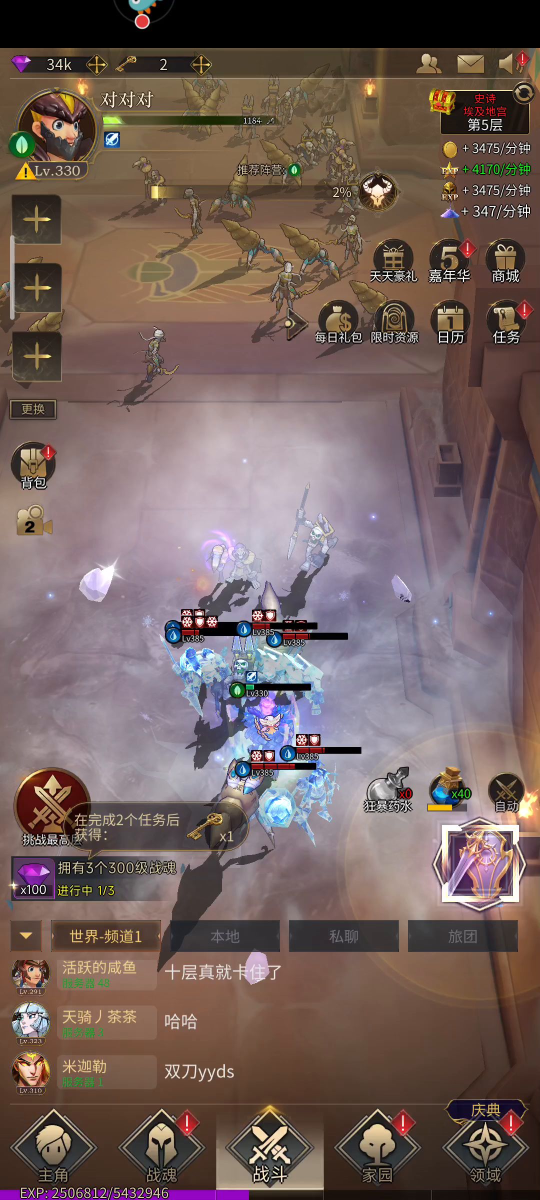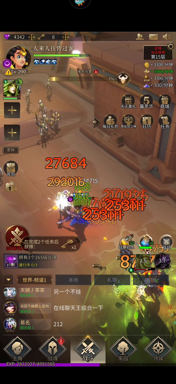 今晚刚升加百列ss,欲试刀。我主角剑盾,三件T4主加10%攻速,两件T1(无其他进阶装备可用),五件都是一阶,都是很普通,主要看战魂搭配。到最后一个没挂,意想不到。