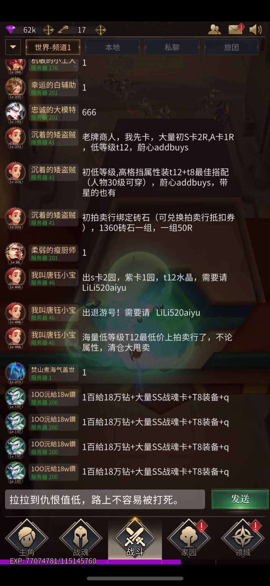 新手送的T1套装在升级3阶后会很给力,小骷髅自带嘲讽,跟孙悟空的嘲讽小猴子似的,会拉BOSS仇恨。不太肉的BOSS就12+8套装,大后期炼狱8以上的图得4+8套装,限时活动就T5套装吧。 安卓区的装备真多,苹果区彻底完犊子了。
