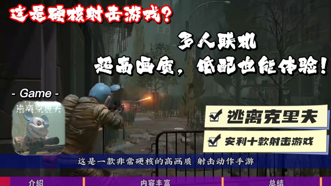 这款逃离(克里夫)我下载玩了玩,简直就是**游戏,只能单人玩,就是几百兆的一个模仿射击对,是模仿射击类的(小游戏)而已,根本算不上射击游戏。点击开始嗖的一下就进游戏了,里面全是人机,死了搜一下就出来了。