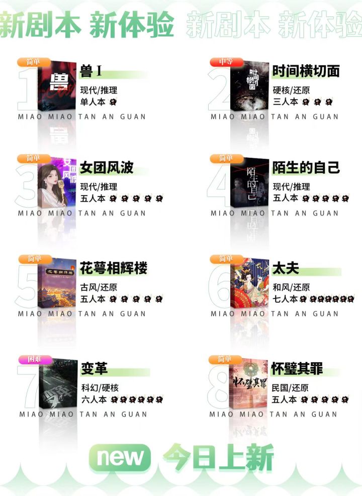 本日剧本上新信息新的一周开始啦!阿喵将周日和今天上架的新本一同送上,希望侦探大大们玩得开心!