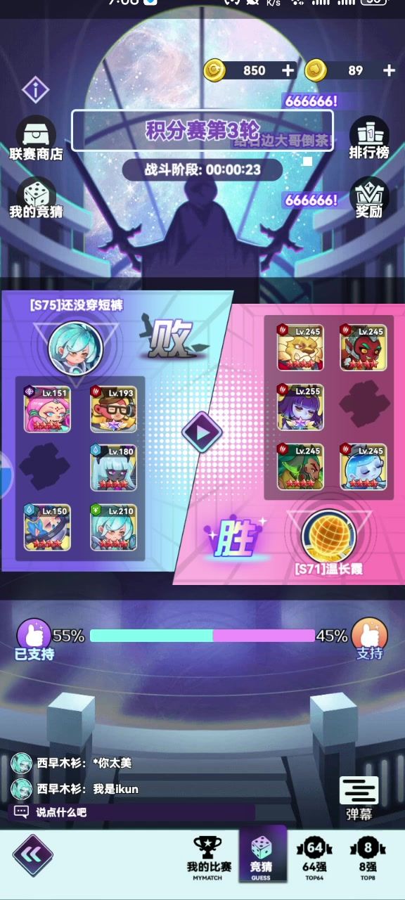 视频里可以看到,左边战力全是100多万,总体比右边多两百万战力。装备护符啥都有。右边全是白版啥都没,然后打架,右边把左边秒杀,你们的竞猜真好玩,数值设定真牛皮