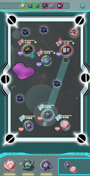 ps:以下画面均为开发中画面,不代表最终品质《第七文明》是一款台球+宝可梦养成类游戏,战斗画面如下:基础规则:撞击对方星球,根据双方攻防属性积累对方干涉值。将对方打入洞中产生高额干涉值。将敌人干涉值打满100%同时撞入四周黑洞中捕获星球。利用属性克制,连续击晕对手。抓准必杀技发动时机。超额干涉(入洞时干涉值>150%)获得超额干涉奖励合理利用星球特性、星球羁绊、场上地形,创造优势。