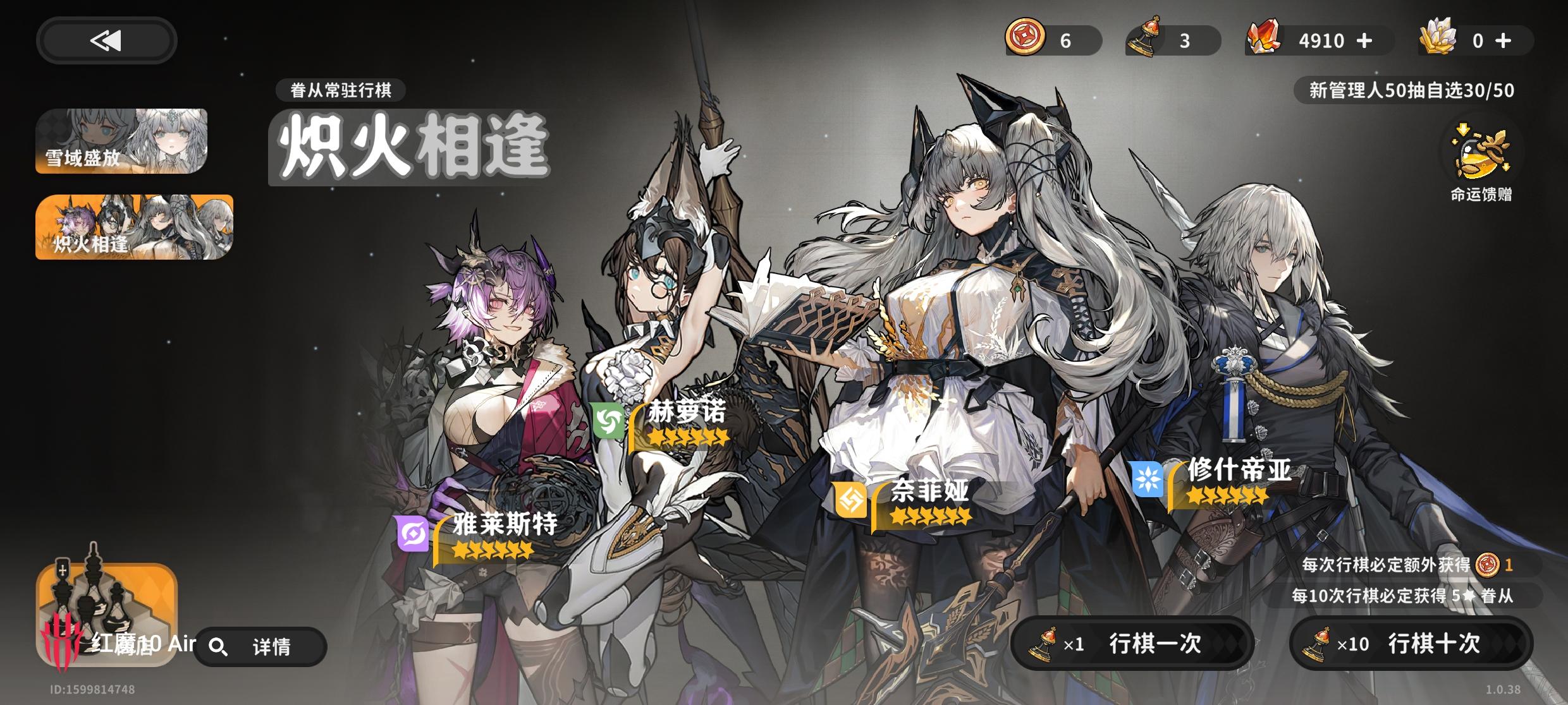 有没有大神指教一下 这游戏福利有点少所以打算做屯屯鼠不抽up 目前就打算抽满50抽常驻换一个六星然后再换一个专武就不抽了目前我赫萝拉0+1 纳叶3命 请问下我手里这些角色培养那几个好还有50抽换那个六星0+1好
