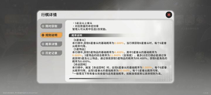 首先,不是米池!图为up池的规则说明。这是up池,池子里有六张6星角色。按照规则说明:六星出货率0.6%,且是含保底0.6%。其次,当获得6星角色时,各角色概率均等。简单翻译一下就是你获得up角色的概率是含保底0.1%。最后,该游戏没有大小保底机制!!这游戏没有保底一说,再结合含保底0.1%的up概率,我不敢想什么样的富哥才配玩这游戏。总结:致力于颠覆米池的一款二游大作!!必定好评如潮!