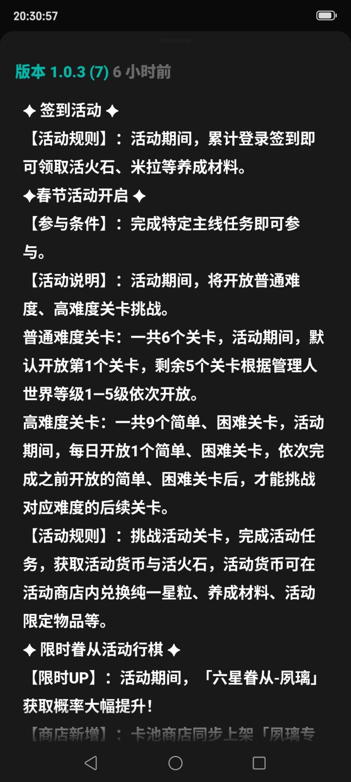 忘记截图了,我tap没更新进游戏有春节活动公告,更新完就没了,写着夙璃卡池,签到活动什么的