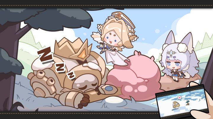 不知是谁从尼芙海姆某地寄来了一则当地的趣闻,上面的东西让人有些眼熟——会是某件旧闻的后续吗?菲尔佳:哇!这是安度西亚吗?希尔兰狄在上,我可不想被这种大块头砸扁啊!伊尔夏:别担心,菲尔佳。看它现在这个样子,应该是在睡觉。你瞧,它还抱着它心爱的那棵树呢。菲尔佳:睡觉?在这里?菲尔佳:那得赶紧给它披上衣服才行!这里的雪还没化,真要冷起来,就算是石头也会被冻裂开啊!伊尔夏:这倒不用担心,戈伦们并