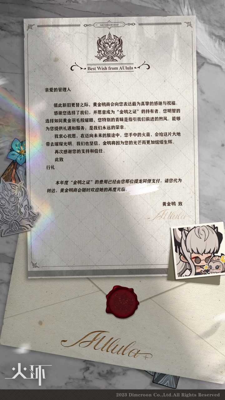 管理人,值此新旧更替之际,黄金鸮商会向您表达最为真挚的感谢与祝福。