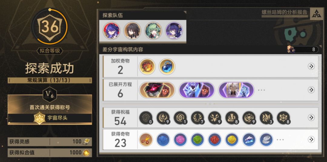 UID:101286024大家好,这里是RX,今天为各位带来的是【差分宇宙】里综合最爽的套路:超频黄泉。通关图镇楼。 概述 这一套路的核心是将黄泉放到一号位,利用【罐中脑】和【无用学者】让黄泉能够连续使用多次终结技,输出成吨的伤害。为什么说它是“最爽”呢?原因有这么几个: 通关速度快 这一套路在进行位面饰品提取或刷取周常积分奖励时消耗的现实时间很短:小怪自不必说,秘技直接砍,战斗加载都免了;至于没