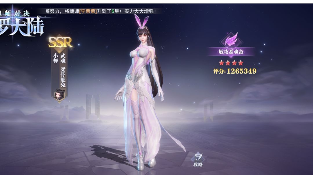 四、技能介绍蟒蛇系第一魂技【永恒之创】噬魂 比比东对敌方单体造成990%攻击力的伤害。该技能会消耗所有魂力,每多消耗1点则额外攻击2个目标。魔蛛系第一魂技【魔魂降临】噬魂 比比东开启[罗刹领域],持续2回合。[罗刹领域]期间,敌方在回合外造成伤害时,噬魂比比东免疫该伤害,且令该敌方造成的伤害降低56.25%,持续1回合。蟒蛇系第二魂技【尊皇】噬魂比比东提升22.5点速度。战斗开始时,若敌方速度低于