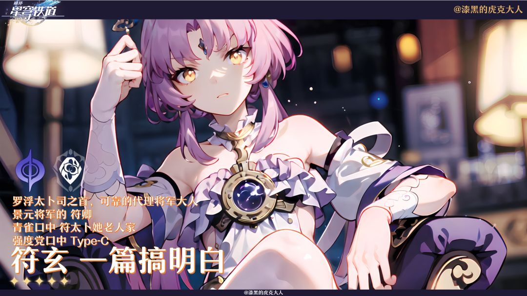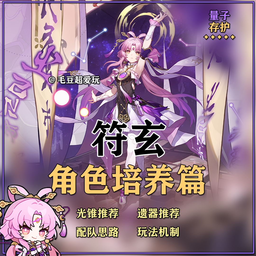 UID:101667549 (写在前面:2.2版本上半太卜大人终于迎来她的首次复刻;首次UP还是在1.3版本,作为首个限定五星存护角色,经历了6个版本,她的配队选择及养成方向有什么改变呢?本期就让我们来一起来细致了解一下吧!其中包括:角色抽取建议、机制全面解析、角色养成推荐、角色配队分析等多个方面,使你更加了解符玄,抽到即毕业) 符玄是一名量子属性生命值模型的存护角色,存在于队伍中会使我方全体受到