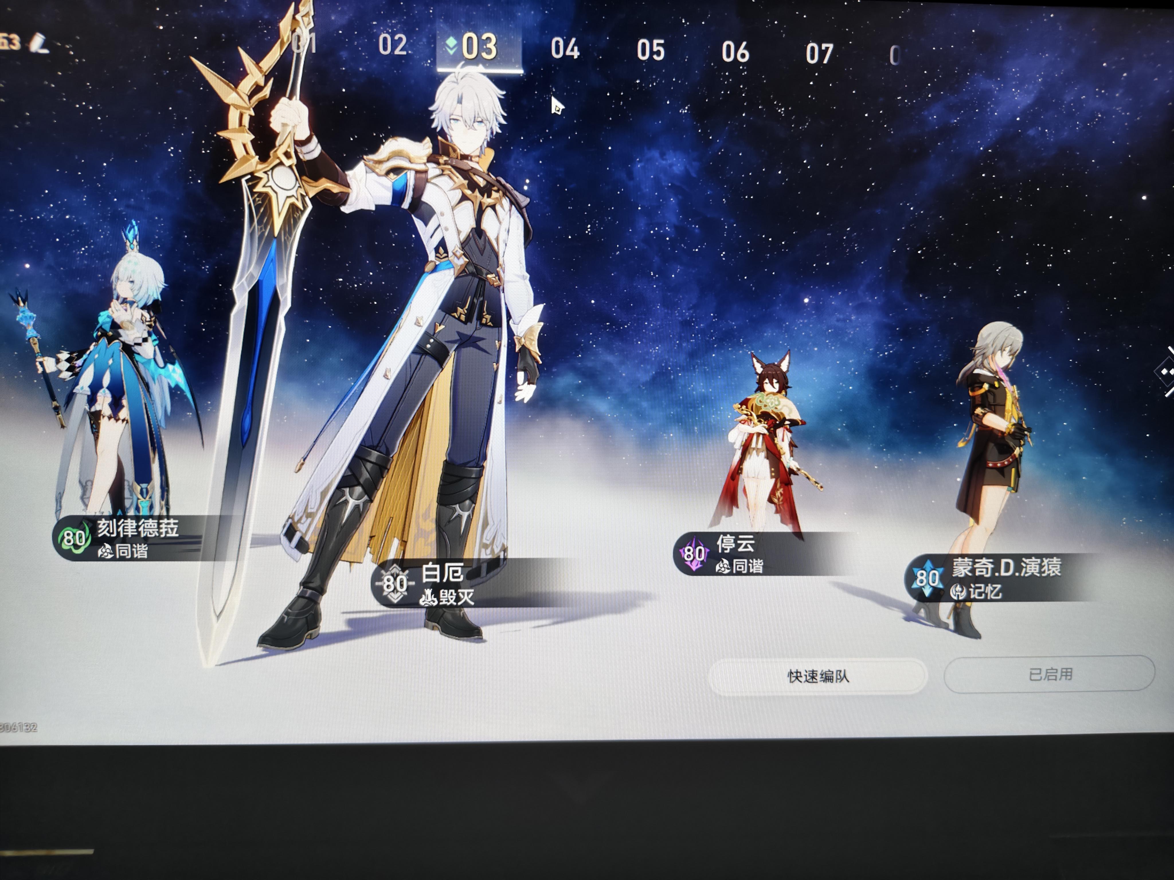 咱没条件,要是有条件的话,娜塔莎换白露,三月七换杰帕德(这个不是很重要,想换就换,不换也无所谓),克拉拉换布洛妮娅(这个算是希儿的标配辅助)