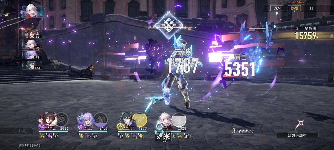 感觉玲可辅助克拉拉应该挺强,为了试用铃可就帮别人打了个混沌。图片是帮别人的的混沌,四星辅助能用的只有停云,所以被迫上姬子、黑塔、青雀打普攻当副c。 二队量子队攻坚没什么好说。一队主要搭配是铃可克拉拉,铃可行迹也就3到6级样子,克拉拉物理暴击套。玲可要给克拉拉加buff所以至少战技普攻循环,可能用的玲可练度低了,实际使用几乎每动都得放战技,不过辅助和副c产点所以战技点也够用。 玲可让克拉拉受击的次数