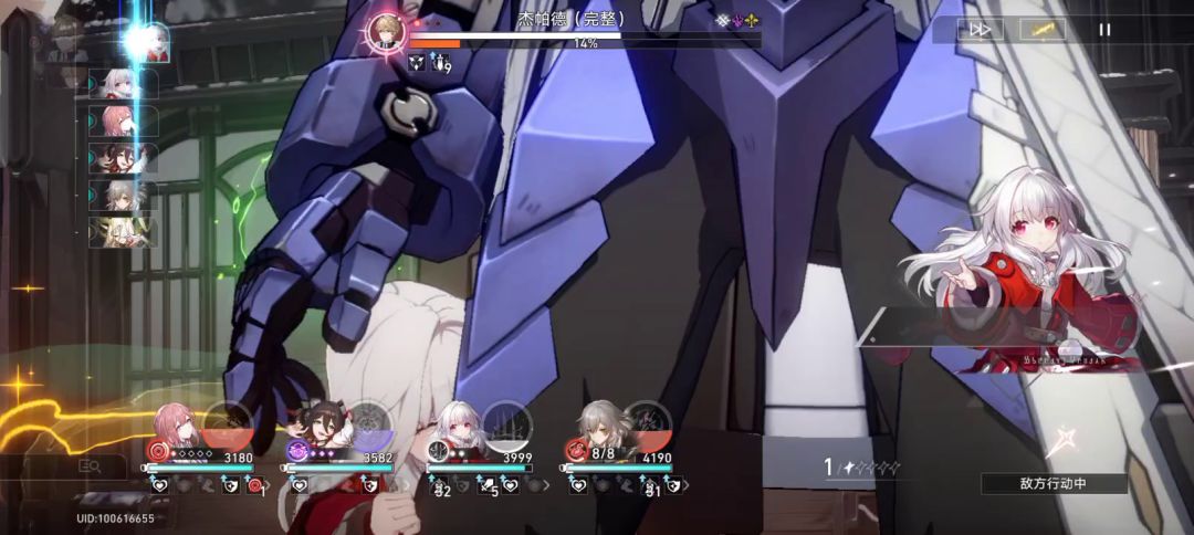 对单和具有极强控制能力的怪物较为弱势,合适以少打多,毕竟白鹿行动是第2位战绩点需要先打平A,这样会导致回血减少,也会影响克拉拉战技群伤,尽可能把驭空速度控制在克拉拉前,这样克拉拉战技能吃一次增幅当然(反击,追加伤害不会影响到驭空战技技能效果也不会消耗该效果)。不要带提前加速或者提前行动效果,这样容易乱抽,以最大增幅效率提升克拉拉反击战技攻击。当然有时候敌方行动提前或者速度教快在你前面也会出现乱抽。