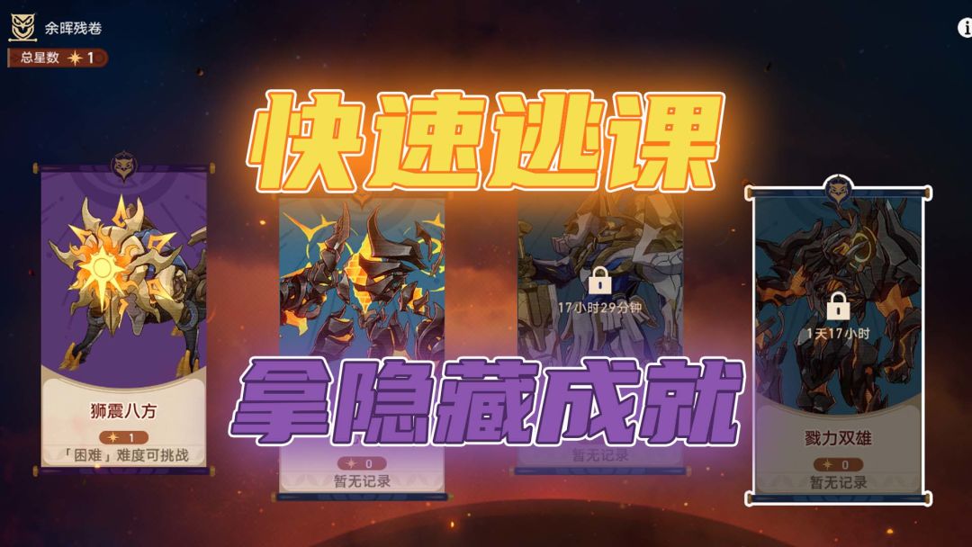 大家好呀,本期给大家带来的是活动《狐斋志异》,降妖辑录中的一些隐藏成就 注意事项: (1)需要先完成活动【狐斋志异】的剧情,才能获得全部成就 1,地主家也没有余粮啊 (1)来到绥园中间的青丘台(完成四处镇妖塔后开放) (2)选择斩邪除恶第二关,当敌方获得鬼火,就能拥有【窃取】状态,攻击偷取战技点(慢慢打就好,建议和下面一个一起刷) 2,燚 (1)还是青丘台,选择斩邪除恶第二关 (2)我们用单体攻击