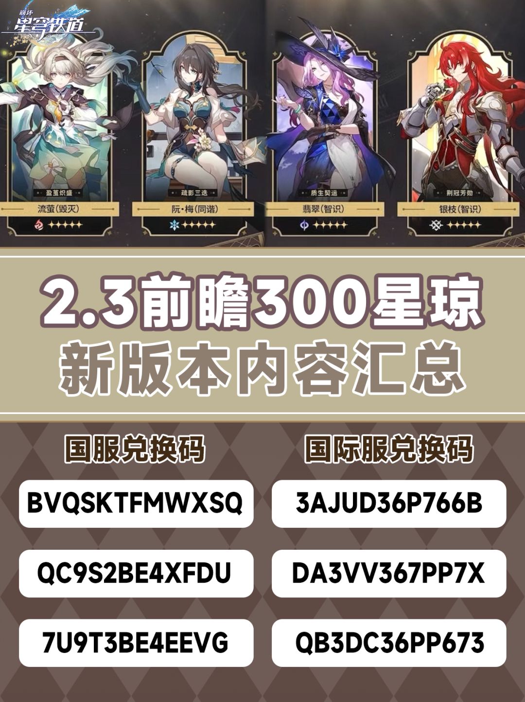 《崩坏星穹铁道》2.3版本「再见匹诺康尼」300星穹前瞻兑换码