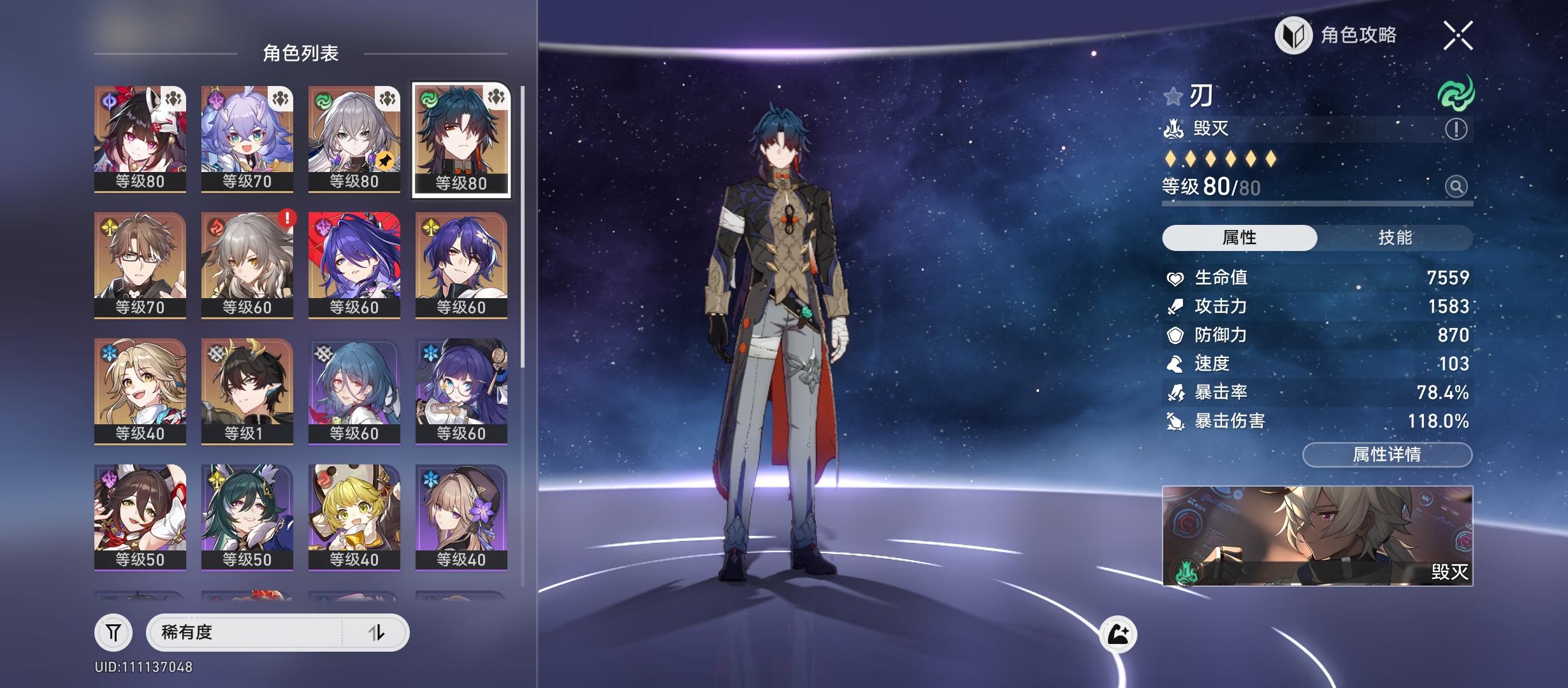 刃是极其强力的C位,输出非常夸张,那么要如何养成呢? TapTap首发 严禁转载 这里先放一个一图流,没时间看的话保存一图流就行了。 你只需要知道一个事实刃的天赋倍率是所有群攻里最高的,因而拥有非常恐怖的清杂能力。 刃自带高额增伤,甚至会引起严重的增伤稀释。刃的双暴在行迹和遗器套装的加持下保底都有41%暴击率,驭空10级终结技才加成24%暴击率。 主堆生命值,会让刃非常肉,不会轻易暴毙。再加上天