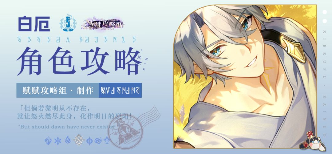 UID:100557114 hi各位开拓者们大家早上中午晚上好,这里是为大家带来角色攻略的青枫 本期带来的是「白厄」的角色攻略,无名的英雄█████,容纳「负世」火种的黄金裔,铭记全世的理想,背负万众的命运,为新世界带来第一缕曙光——「但倘若黎明从不存在,就让怒火燃尽此身,化作明日的烈阳!」 下面围绕技能机制、配装、配队等方面,为大家整理一份「白厄」的简要解析攻略,帮助大家快速了解角色确定培养方向